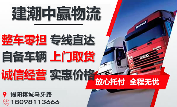 3、揭阳到河源物流专线价格优惠、运货及时,欢迎来人来电咨询揭阳到河源的物流价格、运费和报价等相关问题,建潮中赢物流将全力为您提供合理的运输方案。